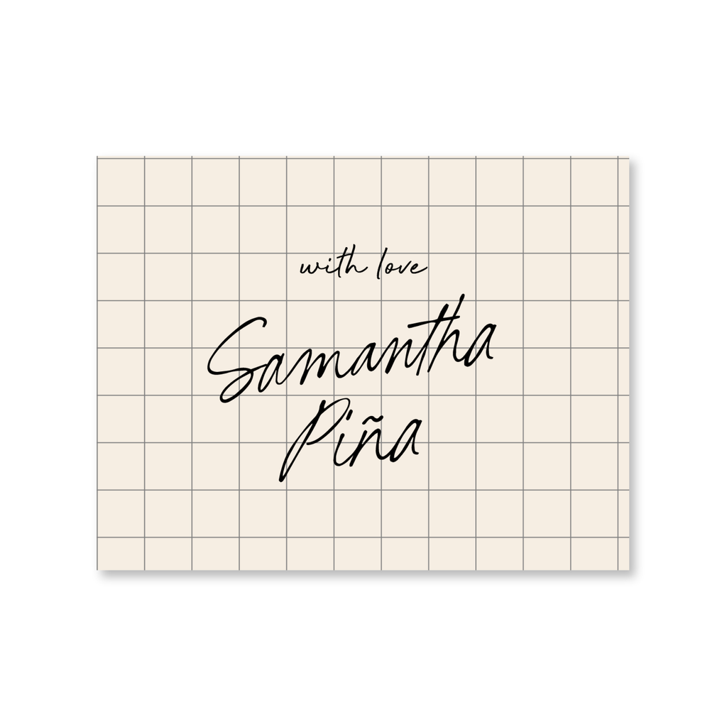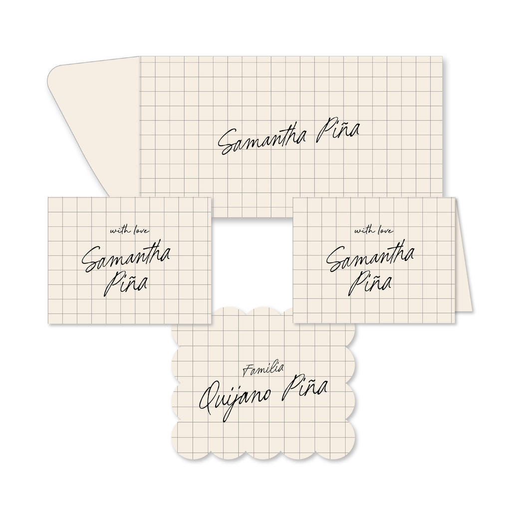 El set Chic combina tipografía elegante con un diseño limpio y contemporáneo, ideal para acompañar regalos, notas o correspondencia personalizada.