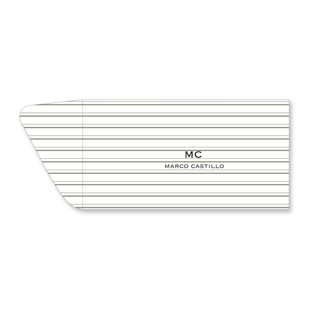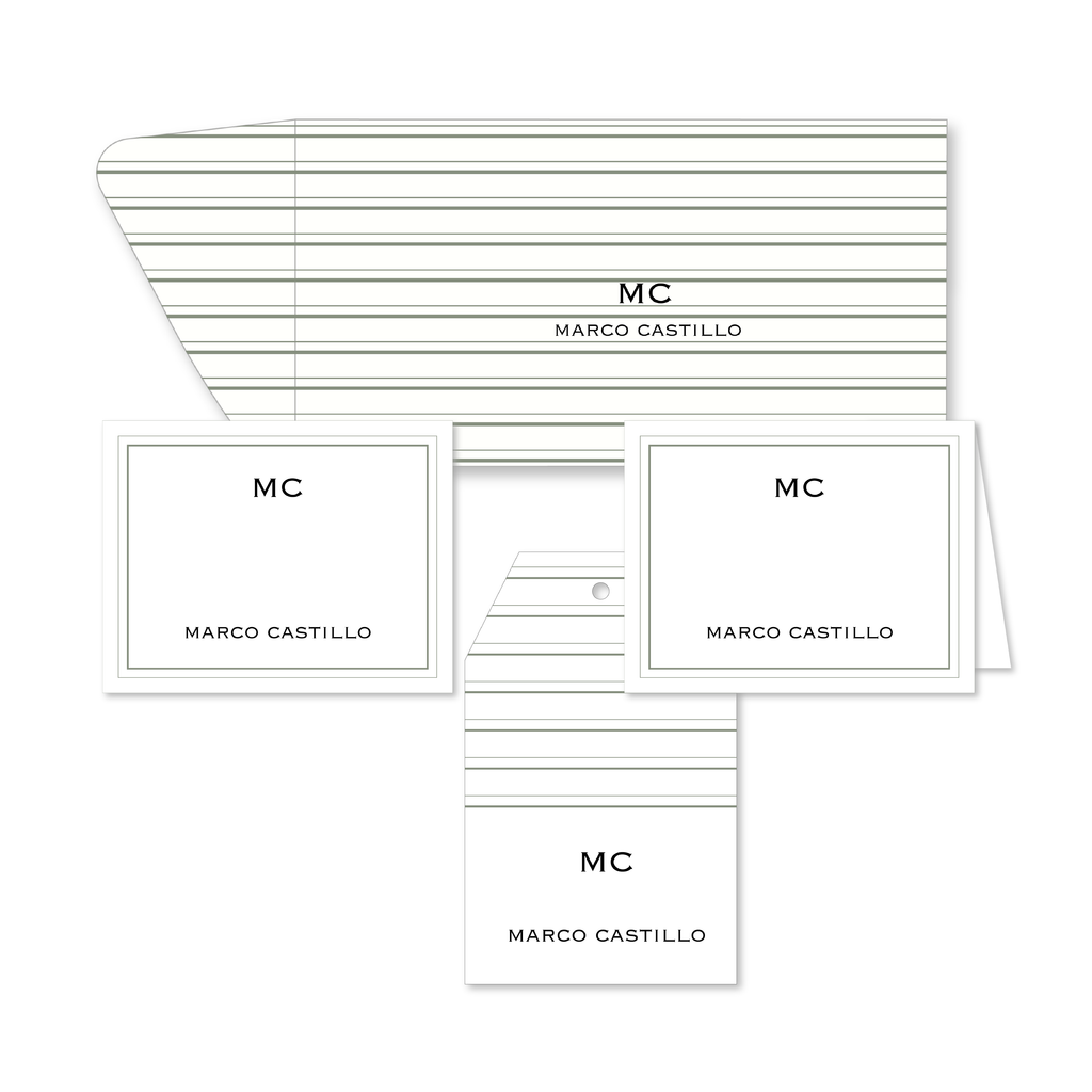 Un diseño claro y sofisticado que utiliza líneas finas para un estilo sobrio y elegante. ✨ El set Pinstripe está elaborado en cartulina texturizada con un delicado patrón de rayas horizontales muy espaciadas en un suave tono verde salvia, ideal para acompañar regalos, notas o correspondencia con un estilo minimalista, fresco y profesional.