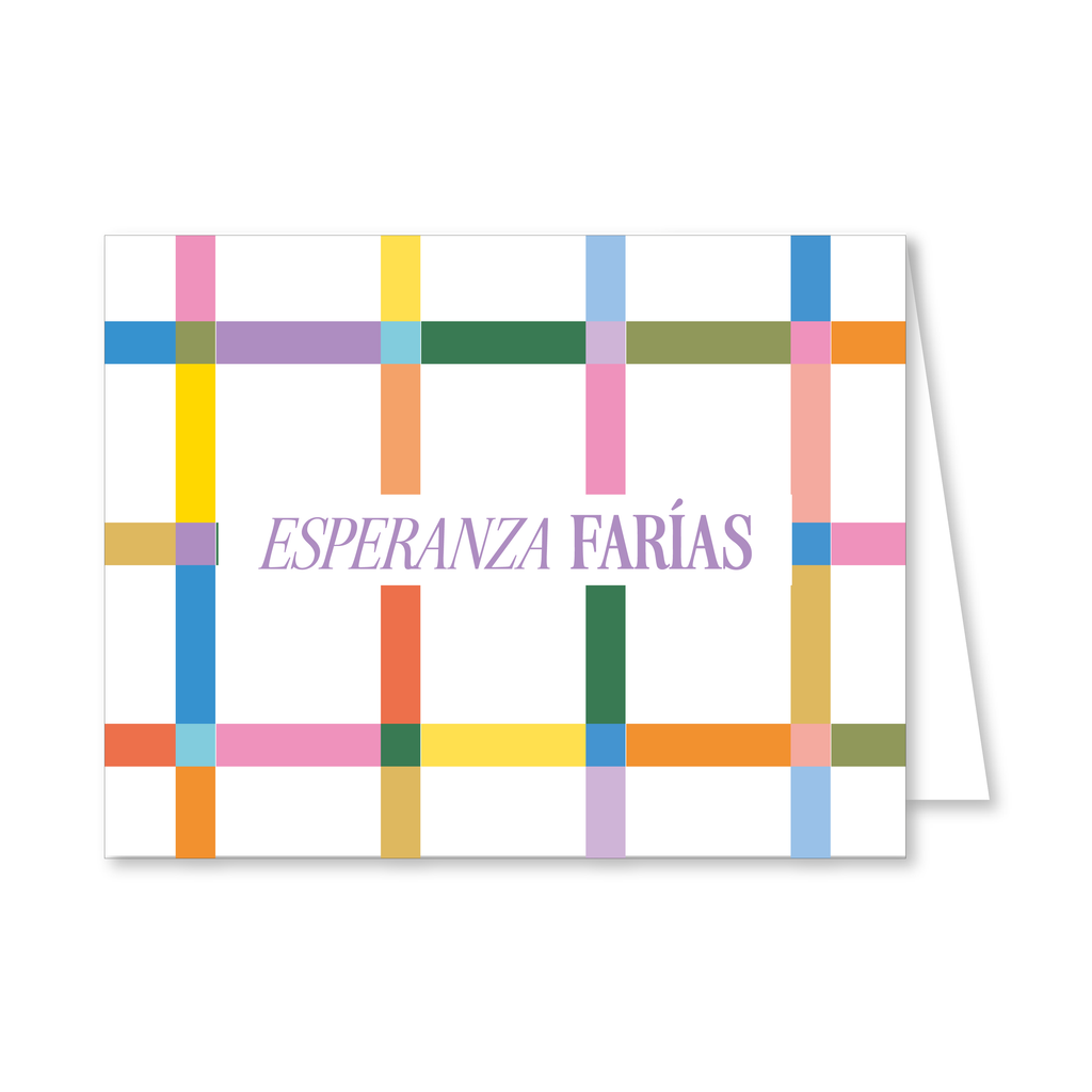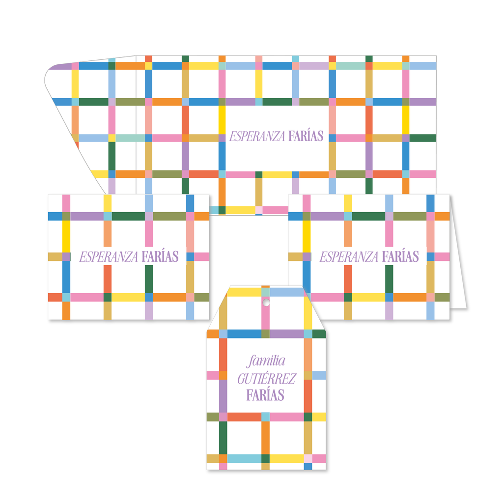Un diseño alegre y colorido que combina la estructura de la cuadrícula con una paleta de tonos vibrantes. ✨ El set Plaid está elaborado en cartulina texturizada con un encantador patrón de líneas entrecruzadas multicolor, ideal para acompañar regalos, notas o correspondencia con un estilo divertido y contemporáneo.