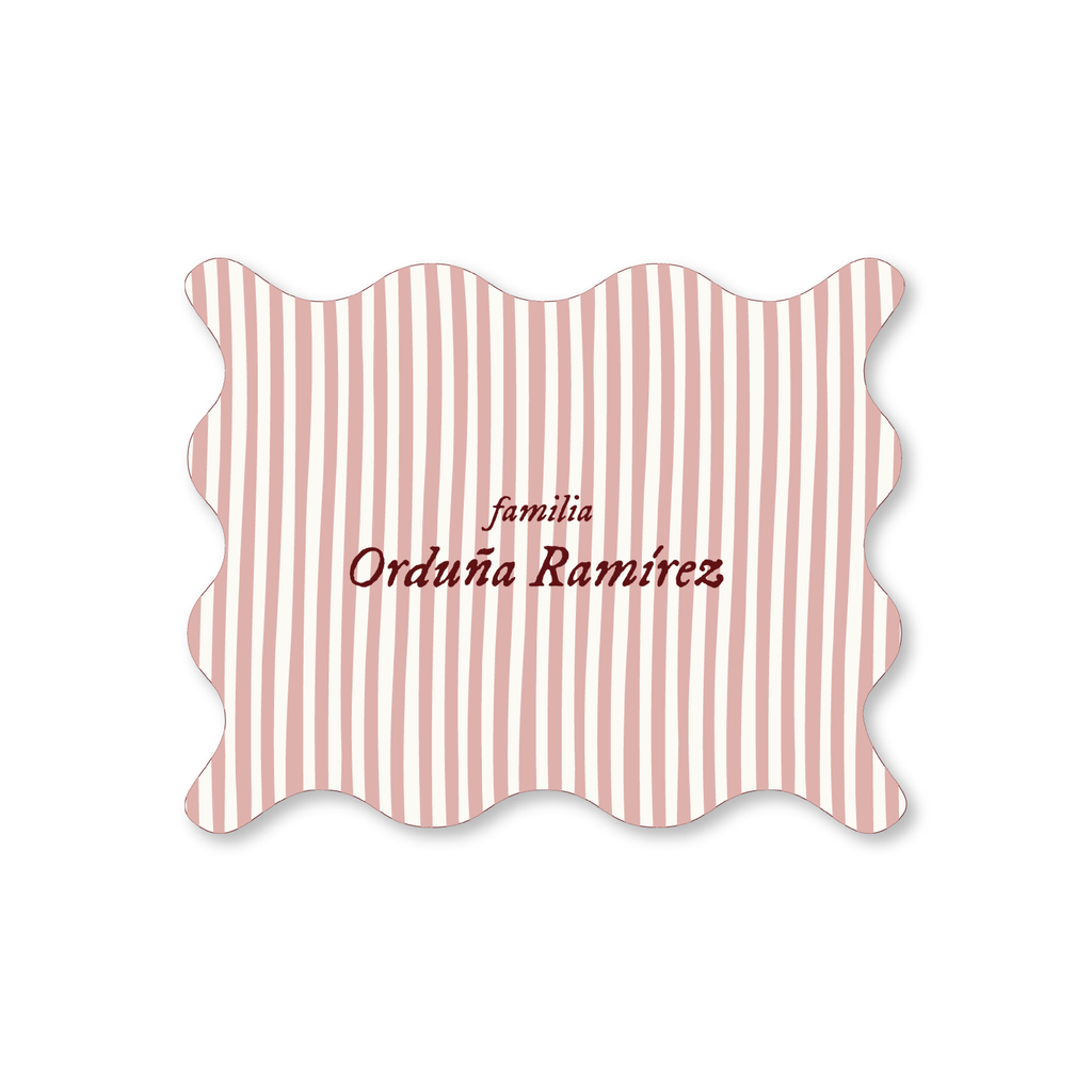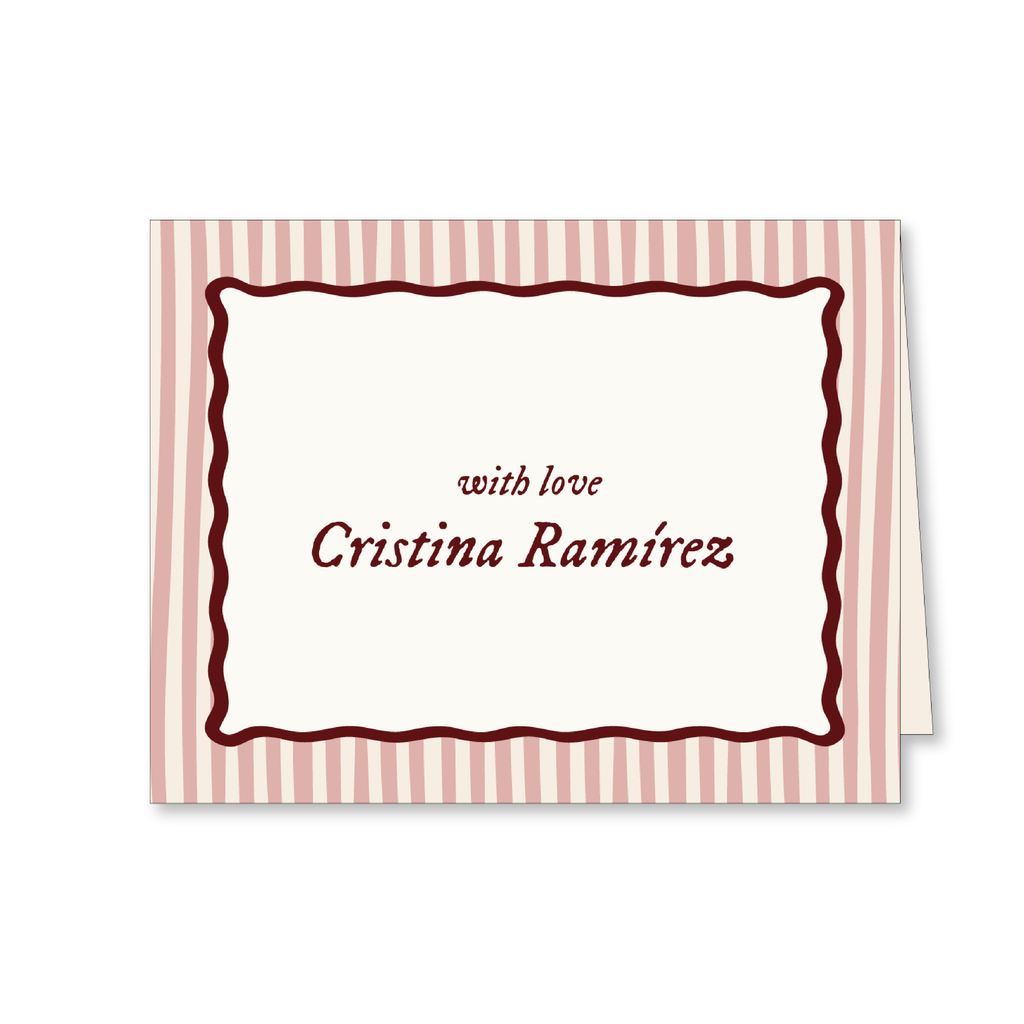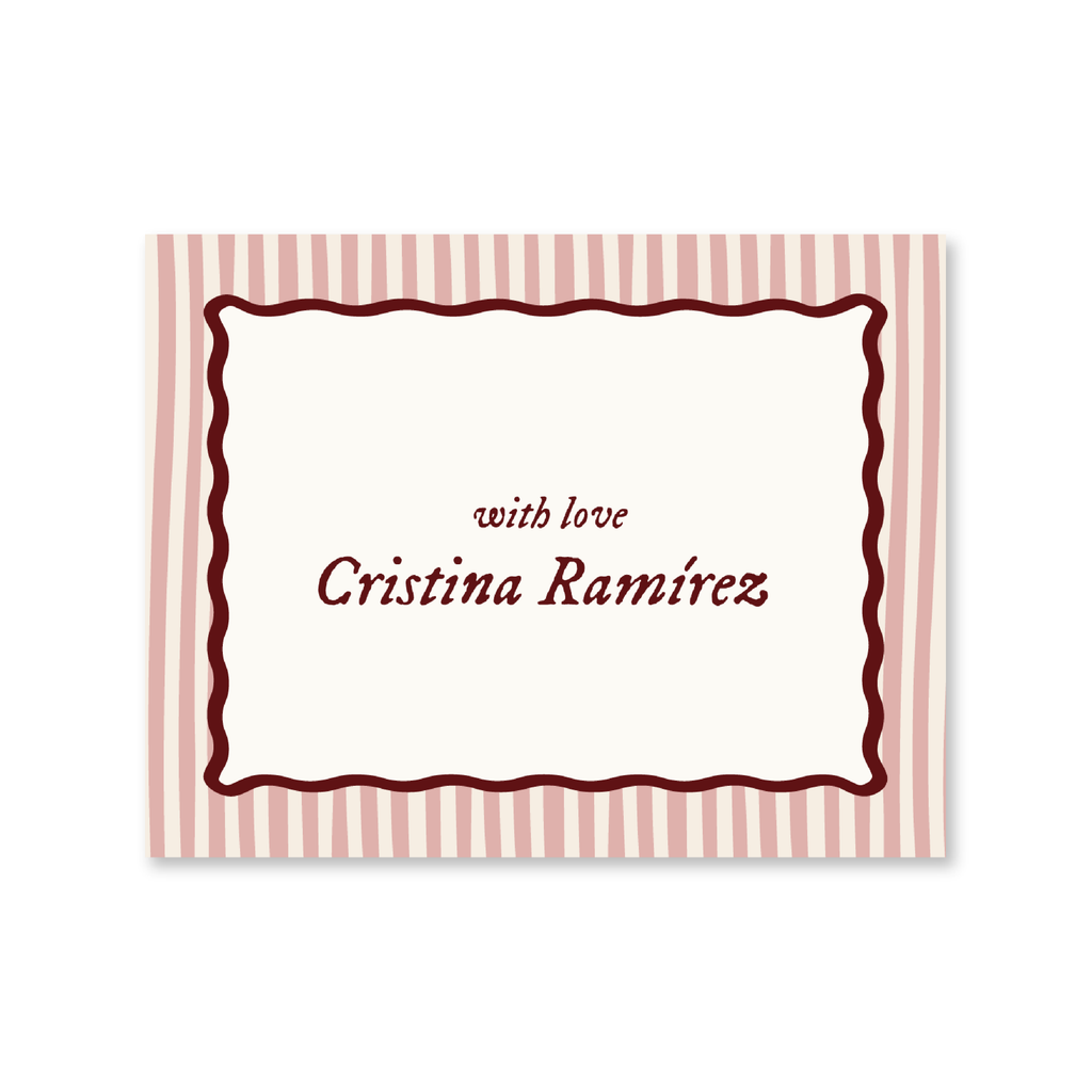 El diseño Classic Bordeaux combina el encanto de las rayas finas con una tipografía en tono vino, ideal para acompañar regalos, notas o correspondencia personalizada.